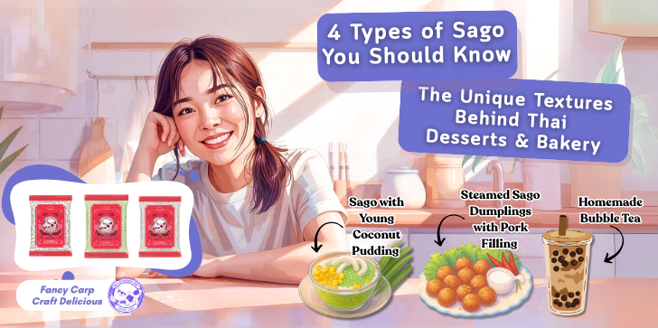 Today, let’s explore the 4 most common types of sago you’ll find in Thai kitchens and beyond. You’ll also learn how to choose the right one for your recipes, plus tips on combining them with Fancy Carp Flour to make your desserts moist, chewy, and absolutely delightful ✨