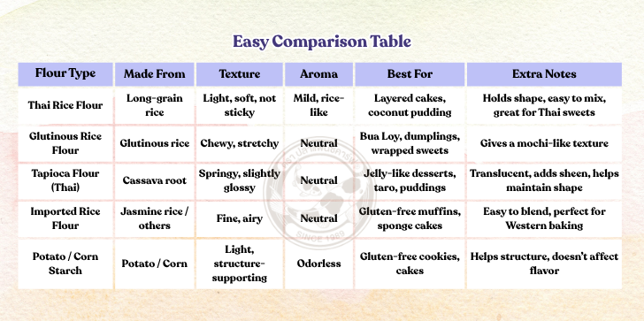 In this article, we’ll take a closer look at both Thai flours and imported options to help you understand their strengths — and choose the perfect one for your homemade treats 😊